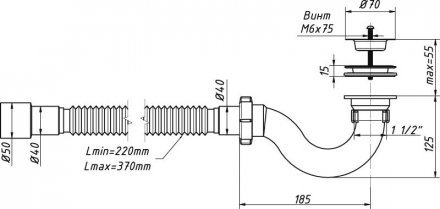 ОПИСАНИЕ: материал сифона полипропилен материал решетки нерж. сталь диаметр решетки, мм 70 входное отверстие 1-1/2" выходное отверстие, мм 40 гибкая труба 40–40/50 длина гибкой трубы, мм 220–370